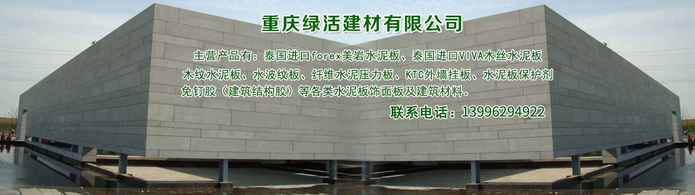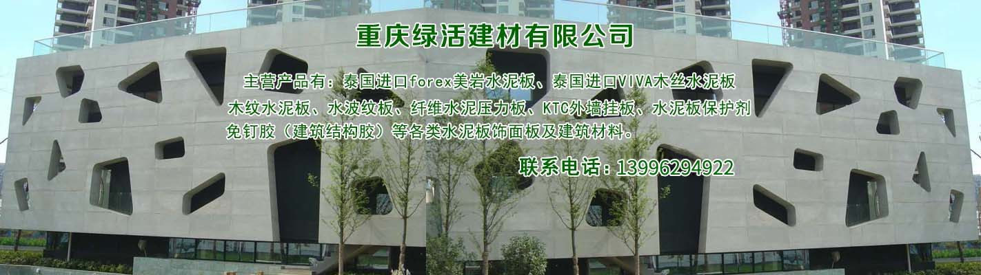 重慶綠活建材有限公司專業(yè)經(jīng)營(yíng)國(guó)內(nèi)外建筑裝飾材料及防火、防水、隔音的綠色環(huán)保材料,其主營(yíng)產(chǎn)品有:泰國(guó)進(jìn)口forex美巖水泥板,泰國(guó)進(jìn)口VIVA木絲水泥板,木紋水泥板,水波紋板,木絲吸音板,高密度纖維水泥板,KTC外墻掛板,水泥板保護(hù)劑,免釘膠(建筑結(jié)構(gòu)膠)等各類水泥板飾面板及建筑材料。 本公司秉承“以服務(wù)為宗旨,以誠(chéng)信為本,合作至上為經(jīng)營(yíng)原則”的管理理念,全力打造產(chǎn)品質(zhì)量品牌,客戶服務(wù)品牌。并致力于國(guó)內(nèi)外建材類產(chǎn)品的新工藝、新技術(shù)、新產(chǎn)品的引進(jìn)與推廣,不斷追求高品質(zhì),以卓越、優(yōu)質(zhì)的產(chǎn)品回饋社會(huì)各界的信賴與支持。